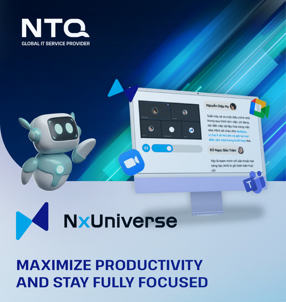NTQのGDCは、従来型のオフショア開発センターを拡張したものではなく、長年の開発・運営実績から得た知見を体系化した、実行力重視のモデルです。協業の進め方や業務プロセスを明確に定義し、生産性・品質・コミュニケーションの安定性を高めています。 加えて、AI基盤「NxUniverse」を活用し、ナレッジ管理(NxKMS)、開発支援(NxDev)、会議内容の整理(NxNote)などを各工程に組み込むことで、属人化の抑制、手戻りの低減、開発全体の効率化を図っています。